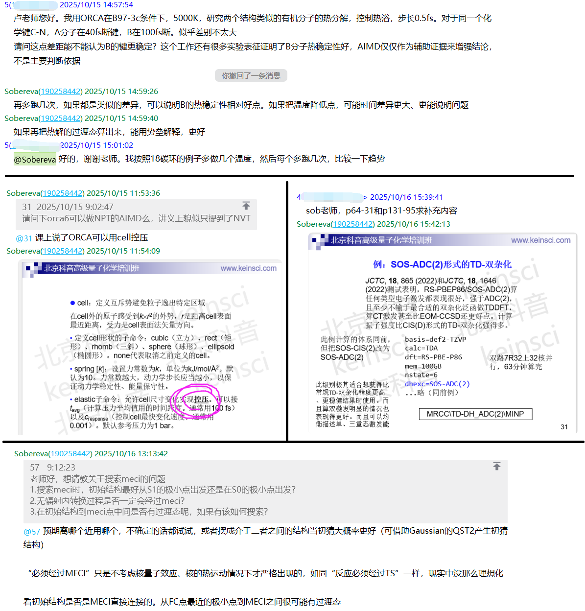 卢老师(Sobereva)无论是在培训内容还是课程内容答疑上,都追求最高质量。课后在培训专用QQ群里卢老师及时、认真回答每一位学员的问题,例如: